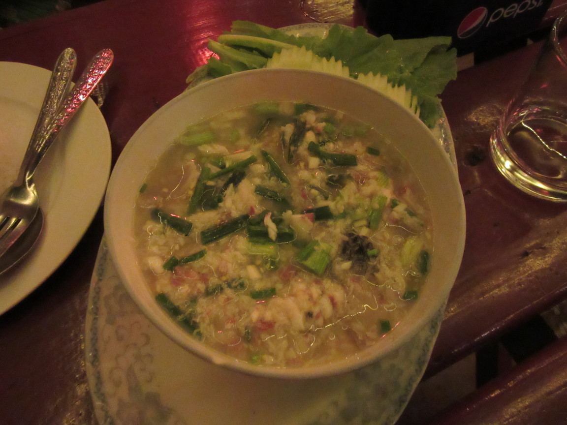 Nach einer ausgiebigen Pause von etwa 3 Stunden weckt uns der Hunger. Hier in Laos koennten wir staendig Essen (falls wir es nicht schon erwaehnt haben). Eat where the locals eat war wieder die Devise und wir wurden nicht enttauscht. Zwar ging die Verstaendigung wieder nur ueber Haende und Fuesse, aber dafuer wurden wir mit koestlichen Speisen belohnt. Food-Porn folgt. Eine delizioese Fischsuppe und ein kulinarisch ueberzeugendes Huehnchengericht spaeter sitzen wir nun wieder im Internetcafe und, haha, schreiben diese Zeilen. Wir haben zwar ueberlegt einen neuen Computer fuer die letzten Tage zu kaufen, haben uns aber schlussendlich fuer die Variante Internetcafe entschieden. Der Wiederverkaufswert eines Laptops in Deutschland sinkt halt doch enorm wenn er nur eine laotische Tastatur hat 😉