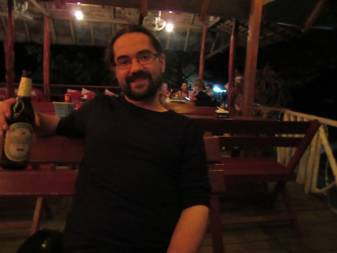 Das Restaurant unserer Wahl hatte keinen Fernseher. Hier lief zwar Elektromusik aber das änderte sich im Laufe des Abends. Als das sauleckere Essen kam schwenkte der Stil über zu Klassikern aus unserer Jugend 🙂 Derart begleitet liessen wir uns den Fisch und je ein Beerlao schmecken.