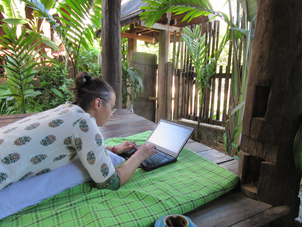 P.P.S. Hier noch ein Bild wie dieser Post im lauschigen Hinterhof des Campa Lao entstand.