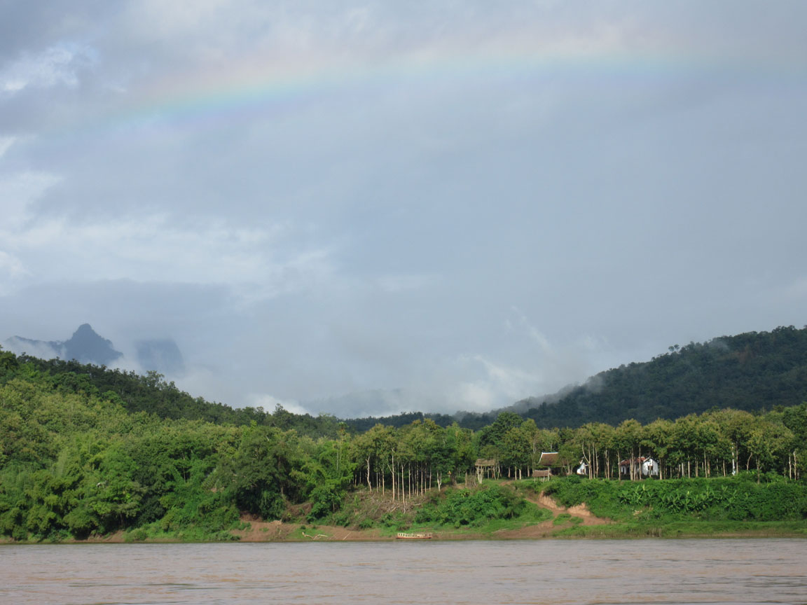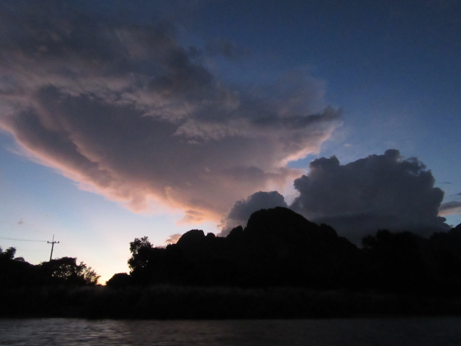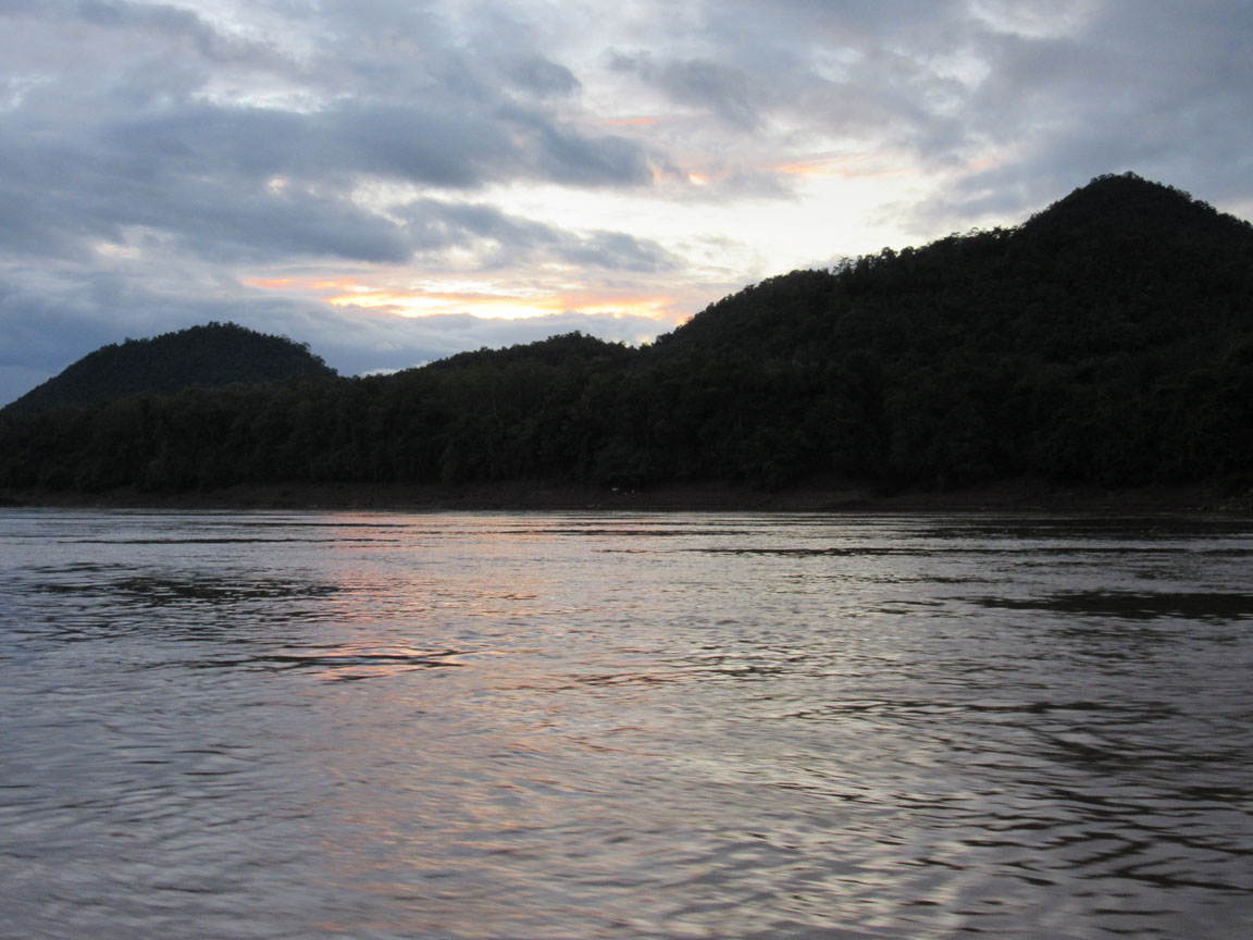 Auf dem Rueckweg zeigte sich Petrus gnaedig und der Mekong von seiner schoensten Seite. 999 weitere kitschige Bilder vom Fluss spaeter hing uns der Magen bis auf die Planken.