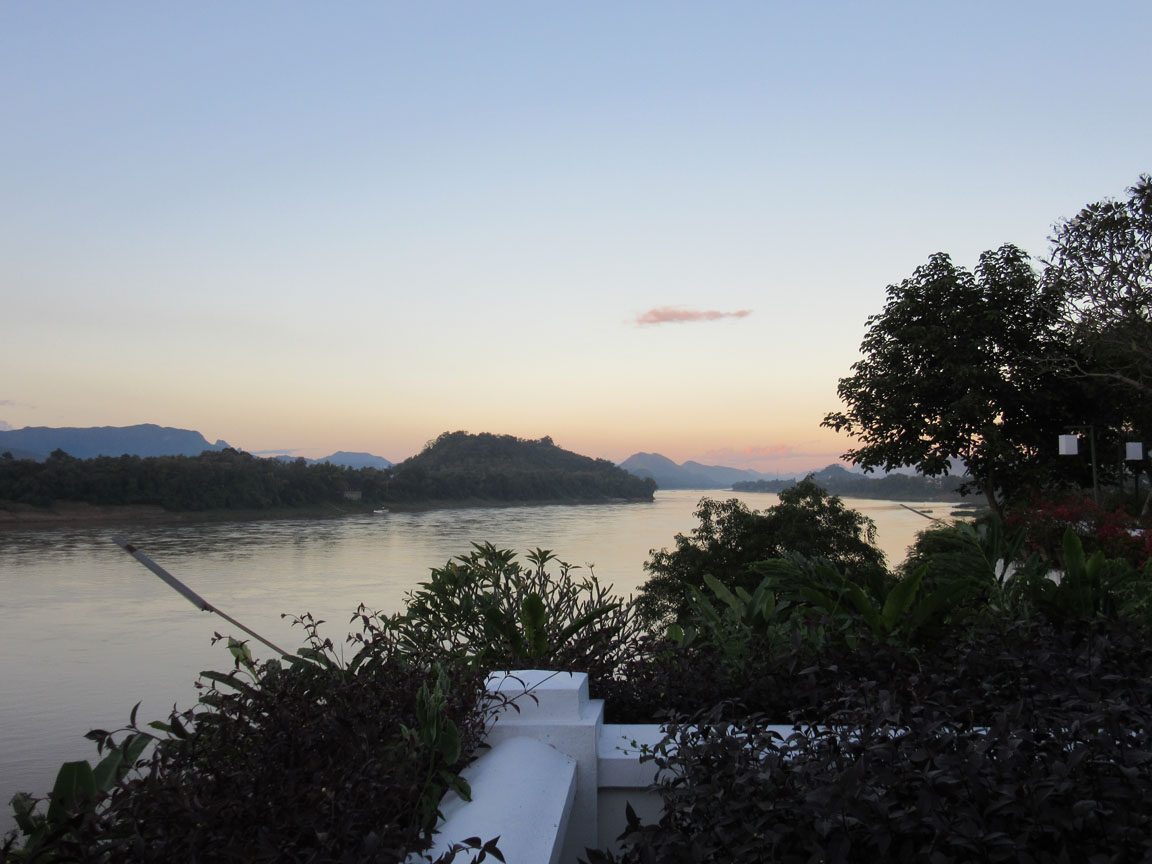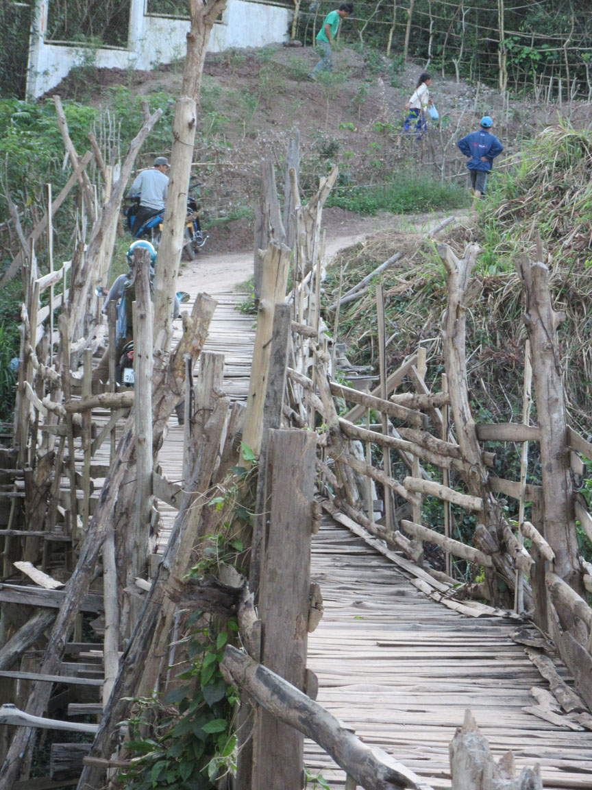 Auf der Suche nach einem schoenen Platzchen fuer ein Sonneuntergangsbier am Mekong fuhren wir mit einem gepflegten Vrooom erst ueber eine sehr fadenscheinige Bambusbruecke, steile schlammige Wege durch Miniaturdoerfer und kamen dann irgendwie am Luang Prabang Le Grand raus. Vrooom!