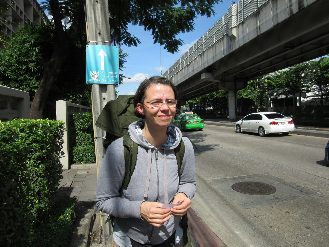 Bangkok, vom Flughafen in die Stadt mit dem Bus: Ich fands total spannend! Ja, klar anstrengend wenn man die Sprache nicht lesen kann und alles fragen muss, aber dann auch mit der Antwort nichts anfangen kann weil man sie nicht versteht. Trotzdem, wie aufregend im ‚Stadtbus‘ in das Zentrum juckeln, mit null anderen ‚Weissbroten‘. Allein der Anblick der Fahrkartenkontrolleurin, wie sie mit einer Art metallenen Regenmacher sowohl Geld verwaltet als auch die  Fahrkarten ausgibt, in einer Art Ballett mit Fingern.