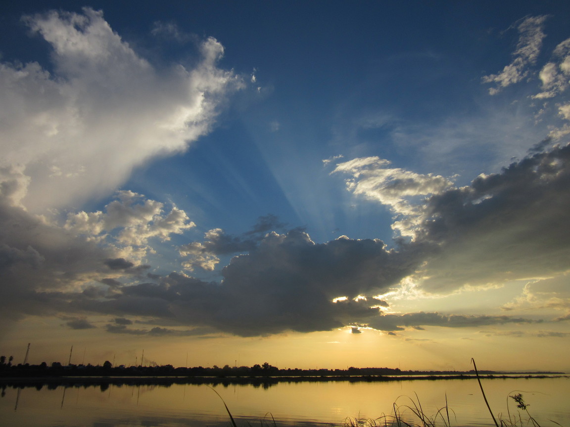 Runter zum Mekong, und der erste Blick war gleich bombastisch, da Sonnenuntergang.