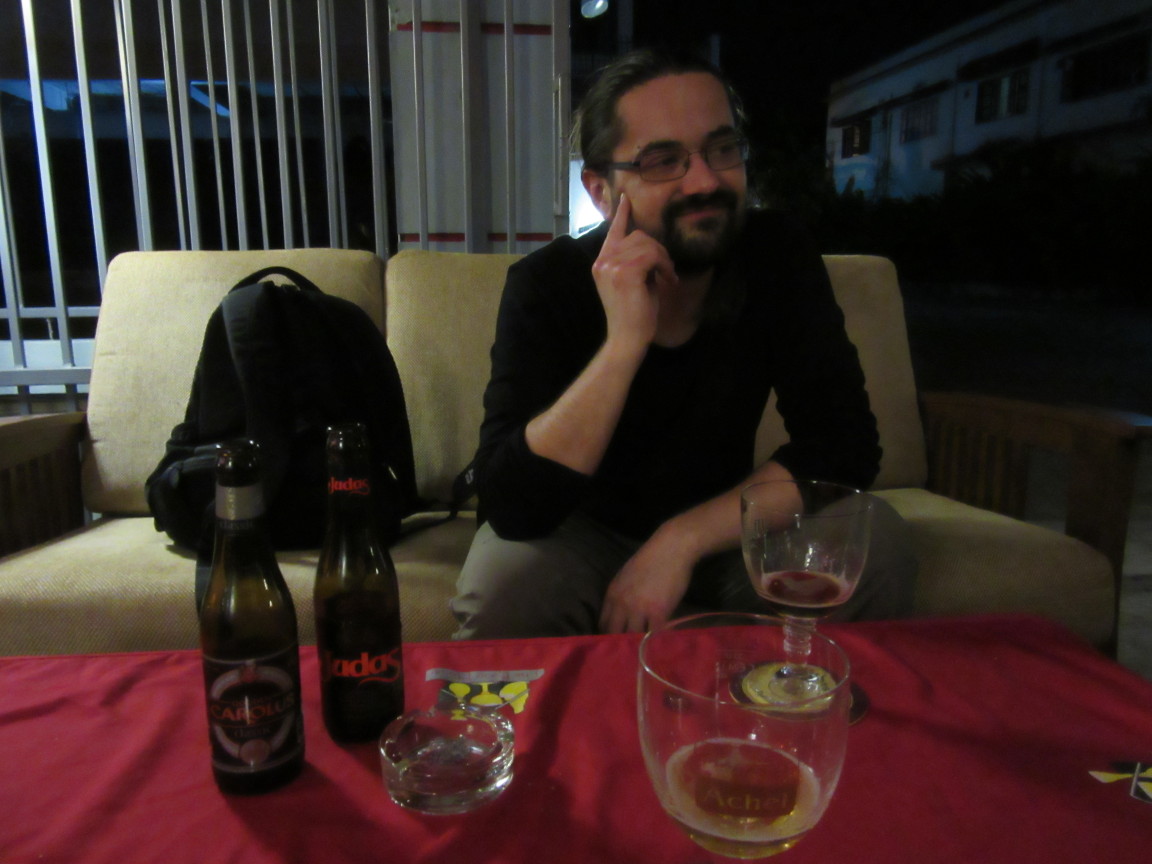 Auf dem Heimweg haben wir noch den Bier-Moo gegenüber entdeckt. Ein Belgier importiert Bier aus aller Welt und vertickt das zu horrenden Preisen in einem loungigen Ambiente, mitsamt mauliger Teenage-Praktikantin. Wir können die Lokalität jeden Abend von unserer Terasse aus sehen … Laos ist wohl noch nicht bereit für diese Art von Geschäftsmodell. Oder es liegt an der Praktikantin. Who knows.