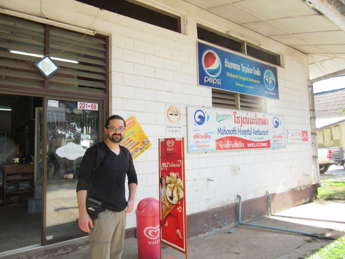 Der Klinik-Komplex ist genau wie man sich soetwas vorstellt, mit verschiedenen Gebäuden für verschiedene Fachrichtungen, umgeben von Blumenbeeten und schattenspendenden Bäumen. Zwei Hauptwege durchziehen das Grundstück einen für hinein und einen für hinaus. Am Ende des Weges der hinein führt entdeckten wir das Klinik-Restaurant. Dort hiess es Zucker auffüllen und Temperatur etwas runterkühlen, sprich ganz profan: Cola trinken. Noch etwas über das Gelände schlendern und ein paar Nops später waren wir wieder draussen. Wir fandens absolut geil, wenn sich vielleicht der eine oder andere von euch fragt warum wir nach Laos fliegen um uns ein Krankenhaus anzusehehn. Darauf sagen wir nur: Siri lesen 🙂