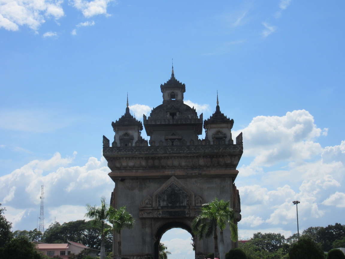 Als letzte Etappen auf Siris Spuren in Vientiane haben wir zumindest die Lan Xang Road/Rue/Avenue, was auch immer – breite Strasse halt – gefunden und sind diese auf so eine Art “Arc de Triomphe“ zugefahren ( mit zwei sehr schicken Leihrädern, davon aber mehr im anderen Blog-Post). Und auch hier kein Lan Xang Hotel in Sicht (was uns zur Vermutung mit dem Lane Xang führt).